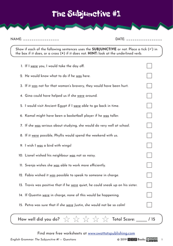 Identifying The Subjunctive Mood Worksheet Sats Questions